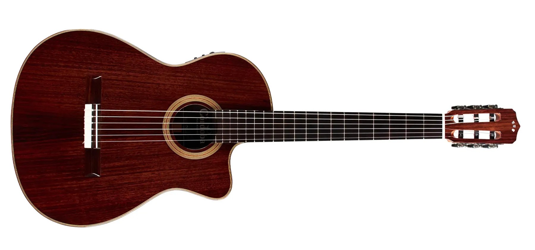 Fusion 12 Exotic Top akoestisch-elektrische gitaren met nylon snaren hebben een massief sparren bovenblad voor een traditionele klank, maar met een keuze uit drie opvallende exotische houtfineer overlays die ze onderscheiden en laten opvallen op het podium.