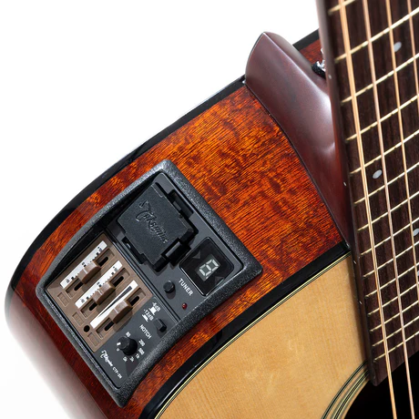 Voor de elektronica van de FT340 BS keert Takamine terug naar zijn vroege roots met de nieuwe CTF-2N-voorversterker, die het geluid van het klassieke FET-voorversterkermodel, ook bekend als de “Brownie”, nieuw leven inblaast. De CTF-2N heeft dat legendarische geluid, maar voegt daar de modernere functies van gemakkelijke toegang tot de batterij, een chromatische tuner en een notch-filter aan toe.