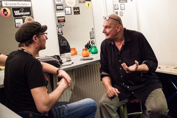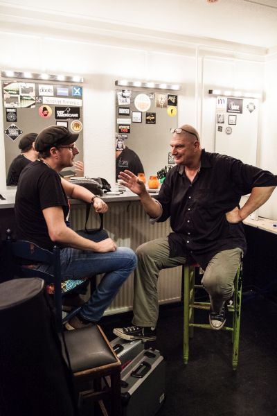 Hoe groot kan een contrast zijn? Na de muzikale blitzkrieg van een minuut of drie, richten de twee heren zich tot het publiek. Dit alles zonder microfoons, zoetgevooisd en met dat aimabele Antwerpse accent, waardoor haast iedere klinker als een ‘è’ uitgesproken lijkt te worden. Kalm, bescheiden maar duidelijk trots vertelt het duo hoe nummers tot stand komen, hoe de muziek vaak net iets ingewikkelder in elkaar zit dan je denkt, over de totaalsound van de band, de juiste mindset, het eeuwige dilemma van de clicktrack en bovenal: de sexy groove. .Na afloop van de clinic - het complete verslag hiervan staat op de Facebook-pagina van De Bassist - spraken we verder met de indrukwekkend vormgegeven bassist, die er voor Triggerfinger al een carrière als gitarist op had zitten. Ook in het interview gaat het op volle kracht vooruit en de rolverdeling is vanaf het eerste moment duidelijk. Paul vertelt, gebaart en roept enthousiast en wij kunnen niets anders doen dan luisteren en een duidelijk verhaal proberen te maken van de enthousiaste uitbarsting.